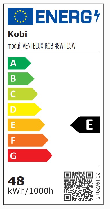 • Energieverbruik: 48-Watt (LED plafondlamp) Energieklasse E - 15-Watt (Ventilator)